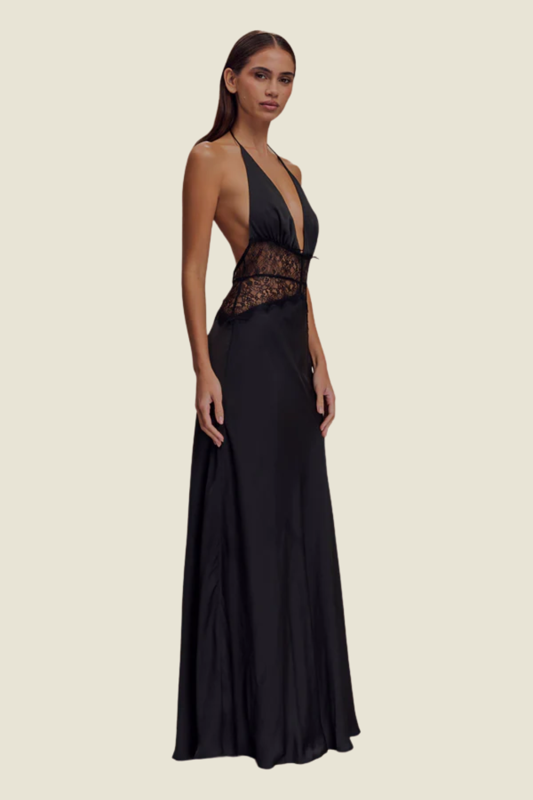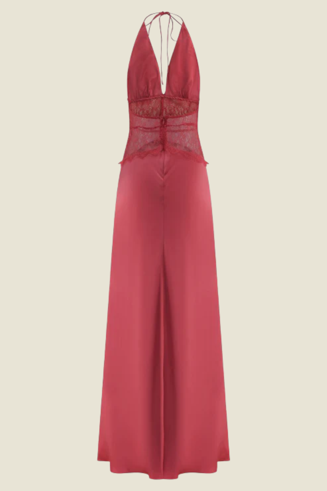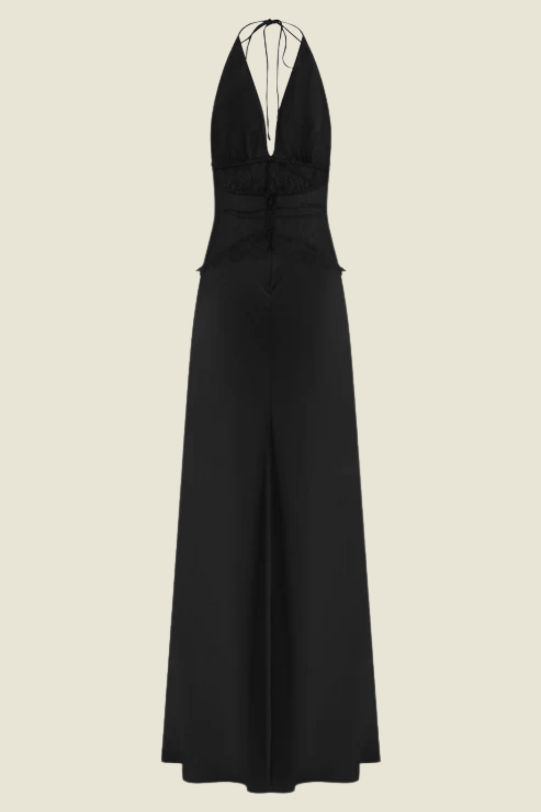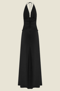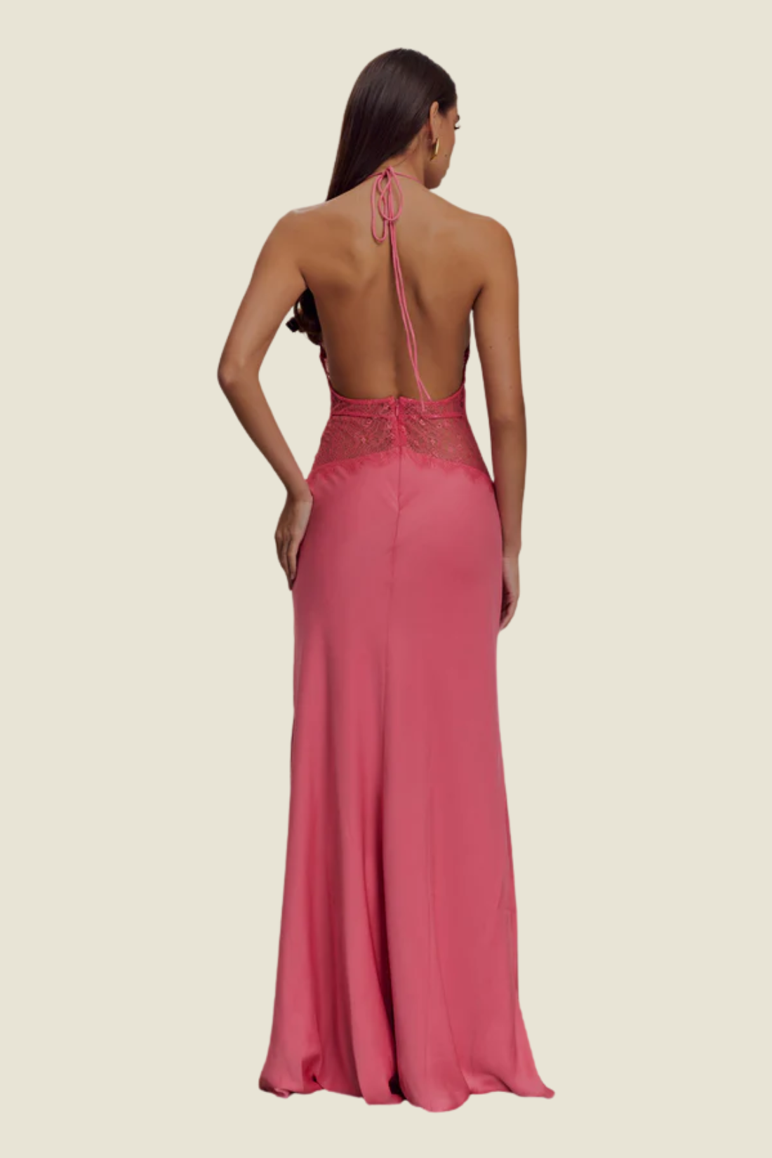 Com um decote profundo em V halterneck que valoriza o colo e os ombros, o Siena oferece uma elegância incomparável. Seu detalhe em renda transparente na cintura e a abertura nas costas adicionam um toque ousado e moderno. A modelagem longa e fluida proporciona liberdade de movimento, ideal para dançar e se destacar.