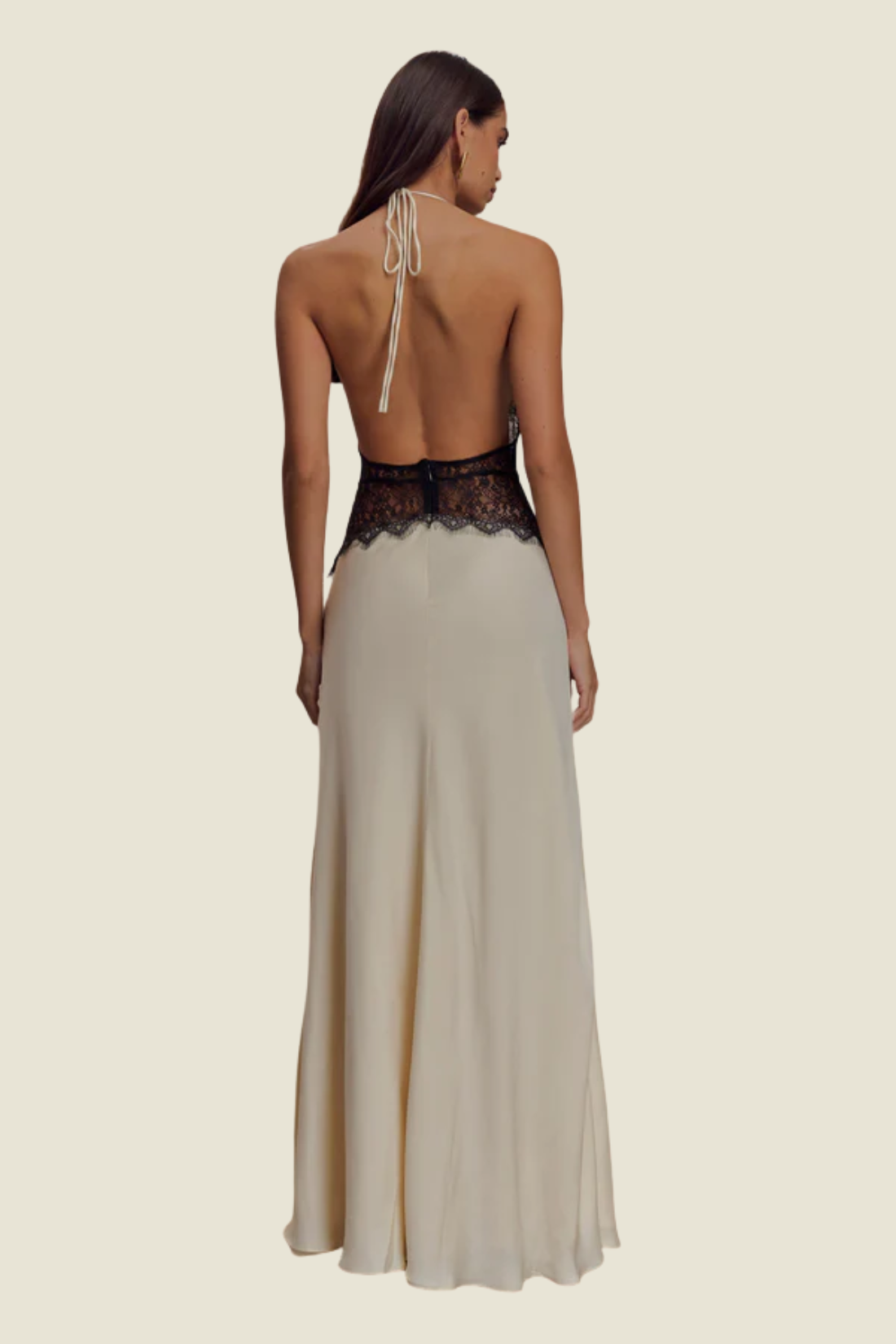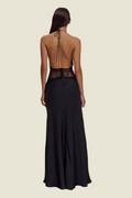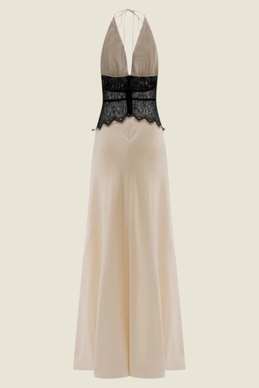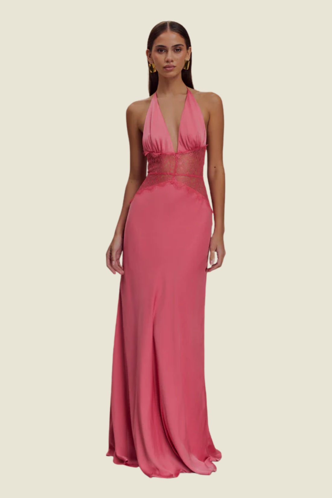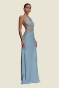 Com um decote profundo em V halterneck que valoriza o colo e os ombros, o Siena oferece uma elegância incomparável. Seu detalhe em renda transparente na cintura e a abertura nas costas adicionam um toque ousado e moderno. A modelagem longa e fluida proporciona liberdade de movimento, ideal para dançar e se destacar.